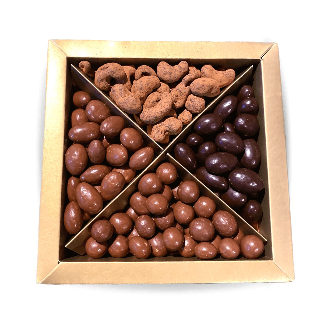A nossa caixa com 4 opções de drágeas de chocolate deliciosas: